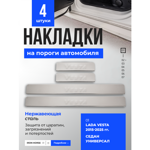 Устали от царапин и сколов на порогах вашей Лада (ВАЗ) Веста / LADA (ВАЗ) Vesta? Накладки на пороги из нержавеющей стали - идеальное решение! Этот внешний авто тюнинг (набор из 4 накладок - металл) не только защитит ваш автомобиль от повседневных механических повреждений, но и станет ярким аксессуаром.