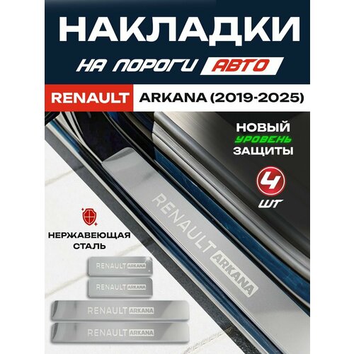 Устали от царапин и сколов на порогах вашей Рено Аркана / Renault Arkana? Представляем вам идеальное решение – накладки на пороги из нержавеющей стали! Этот внешний авто тюнинг (набор из 4 накладок - металл) не только защитит ваш автомобиль от повседневных механических повреждений, но и станет ярким аксессуаром.