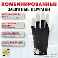 Комбинированные рабочие перчатки ARCTICUS 9905, из уникального материала премиум класса - пластичной и мягкой натуральной кожи Наппа, известной своей долговечностью. На тыльной стороне высококачественный воздухопроницаемый двухслойный х/б трикотаж черного цвета, что обеспечивает лучшую циркуляцию воздуха и предотвращает излишнее потообразование. Ладонная часть, зона первой фаланги пальцев и рабочая зона захвата выполнены из особо мягкой износостойкой кожи, благодаря чему достигается очень высокая чувствительность пальцев. Так же отличительной особенностью данной модели является отдельно вшитый большой палец, обеспечивающий эргономичность и свободу движений. Эластичная манжета и застежка Velcro позволяют удобно и надежно фиксировать манжету на руке любой полноты. Высококачественные материалы и продуманный до мелочей дизайн данной модели созданы для людей, ценящих качество и комфорт в любых жизненных ситуациях. Перчатки износостойкие и универсальные, подходят для любых видов деятельности в сухих средах, где важно сохранить высокую чувствительность пальцев, и в тоже время необходима защита рук от нежелательных механических воздействий. Например, для работы автомеханика при ремонте автомобиля, отделочных или строительных работах, для сборки оборудования, при сортировке и погрузке, для сухой уборки и работы на даче, или организации отдыха на природе.