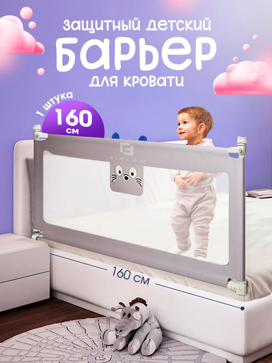 Защитный барьер для кровати 160 см, 1 шт, детское ограждение, серый, CINLANKIDS: сравнение цен, характеристики, фото, актуальное наличие и цены.