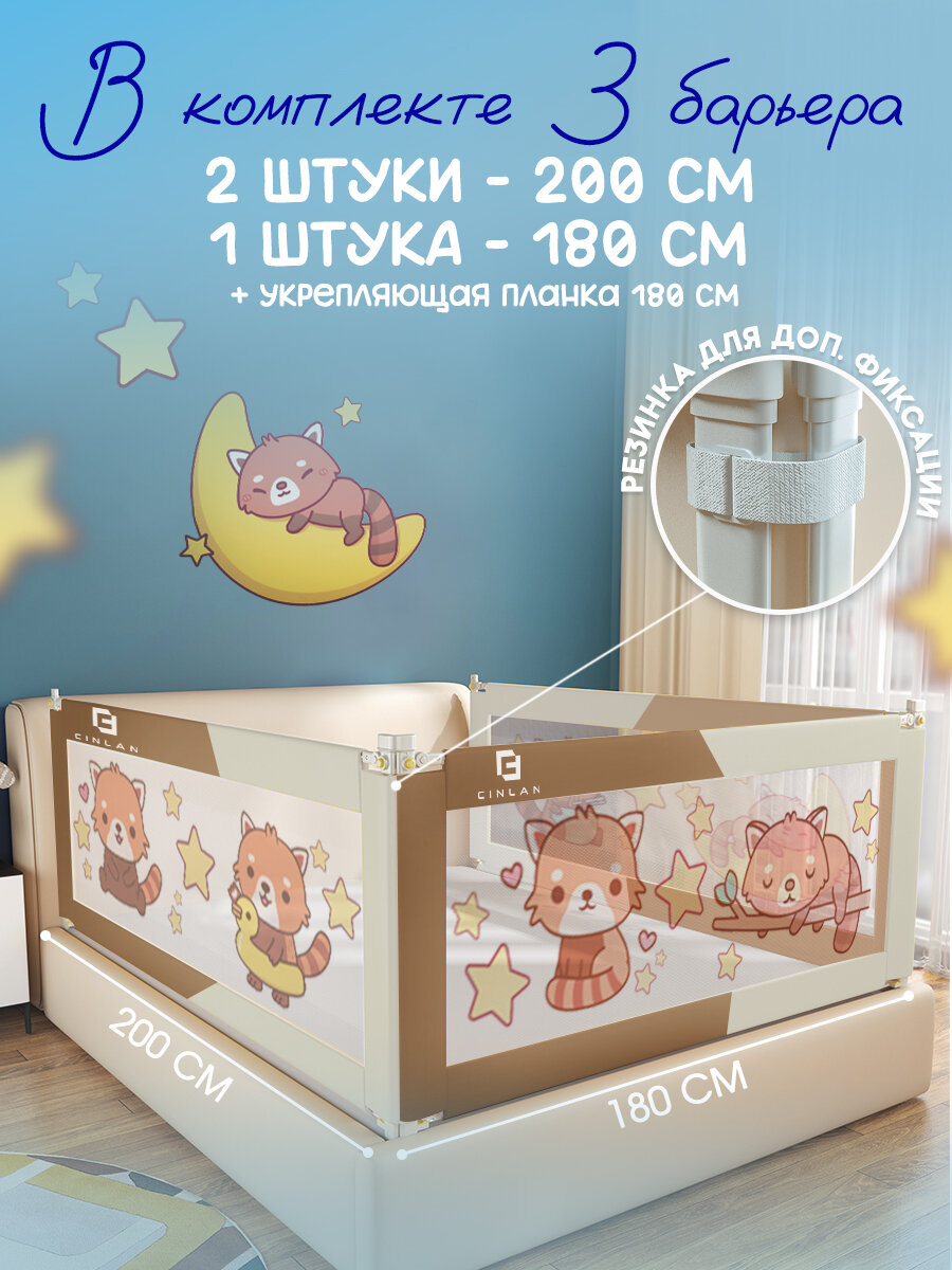Защитный барьер для кровати 180х200 см с соединительной планкой CINLANKIDS: сравнение цен, характеристики, фото, актуальное наличие и цены.