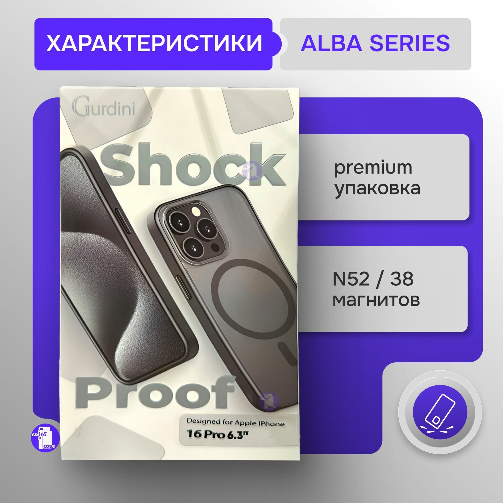 SHOCkproof – чехол-флагман бренда Gurdini, является самым тонким противоударным чехлом для iPhone, выполнена из нано-материалов, поглощающих ударную волну. Кейс не замедляет скорость зарядки вашего айфона и совместим с беспроводной зарядкой.