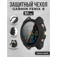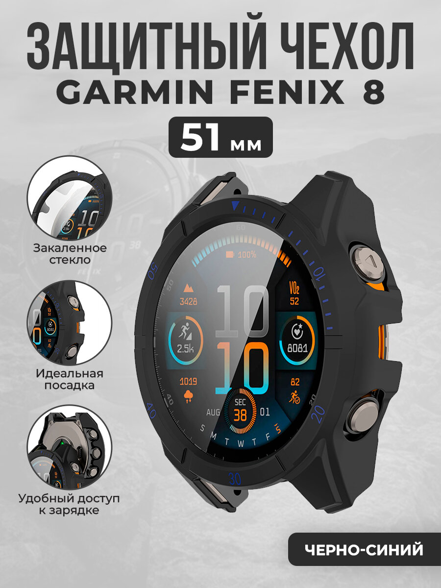 Купить Защитный чехол-стекло для Garmin Fenix ​​8, 51 мм, черно-синий с доставкой по всей России.