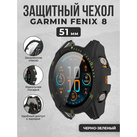 Защитный чехол-стекло для Garmin Fenix ​​8, 51 мм, черно-зеленый