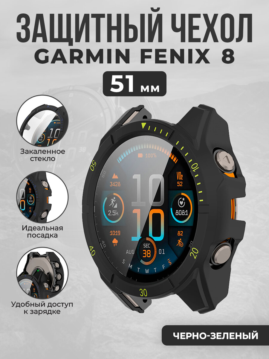 Защитный чехол-стекло для Garmin Fenix ​​8, 51 мм, черно-зеленый: сравнение цен, характеристики, фото, актуальное наличие и цены.