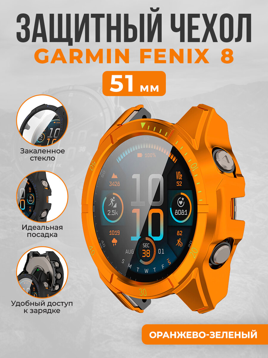 Купить Защитный чехол-стекло для Garmin Fenix 8, 51 мм, оранжево-зеленый с доставкой по всей России. Защитный чехол-стекло для Garmin Fenix 8, 51 мм, оранжево-зеленый: сравнение цен, характеристики, фото, актуальное наличие и цены.