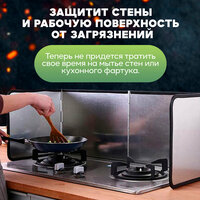 Универсальный защитный экран от брызг жира и масла - это быстрое и практичное решение проблемы, связанной с загрязнениями около плиты или раковины. Он спасет от капель, брызг, перегрева поверхностей, а также пара и жара от конфорок не только стены, но и различные кухонные принадлежности и приборы, если они в зоне приготовления. Его можно использовать и на раковине при мытье посуды для защиты стен от потеков воды. Теперь не надо прилагать особых усилий для наведения порядка и постоянно протирать кухонную мебель и кафель после приготовления еды - наш незаменимый многофункциональный аксессуар для кухни станет надежным помощником и сделает все за вас.
