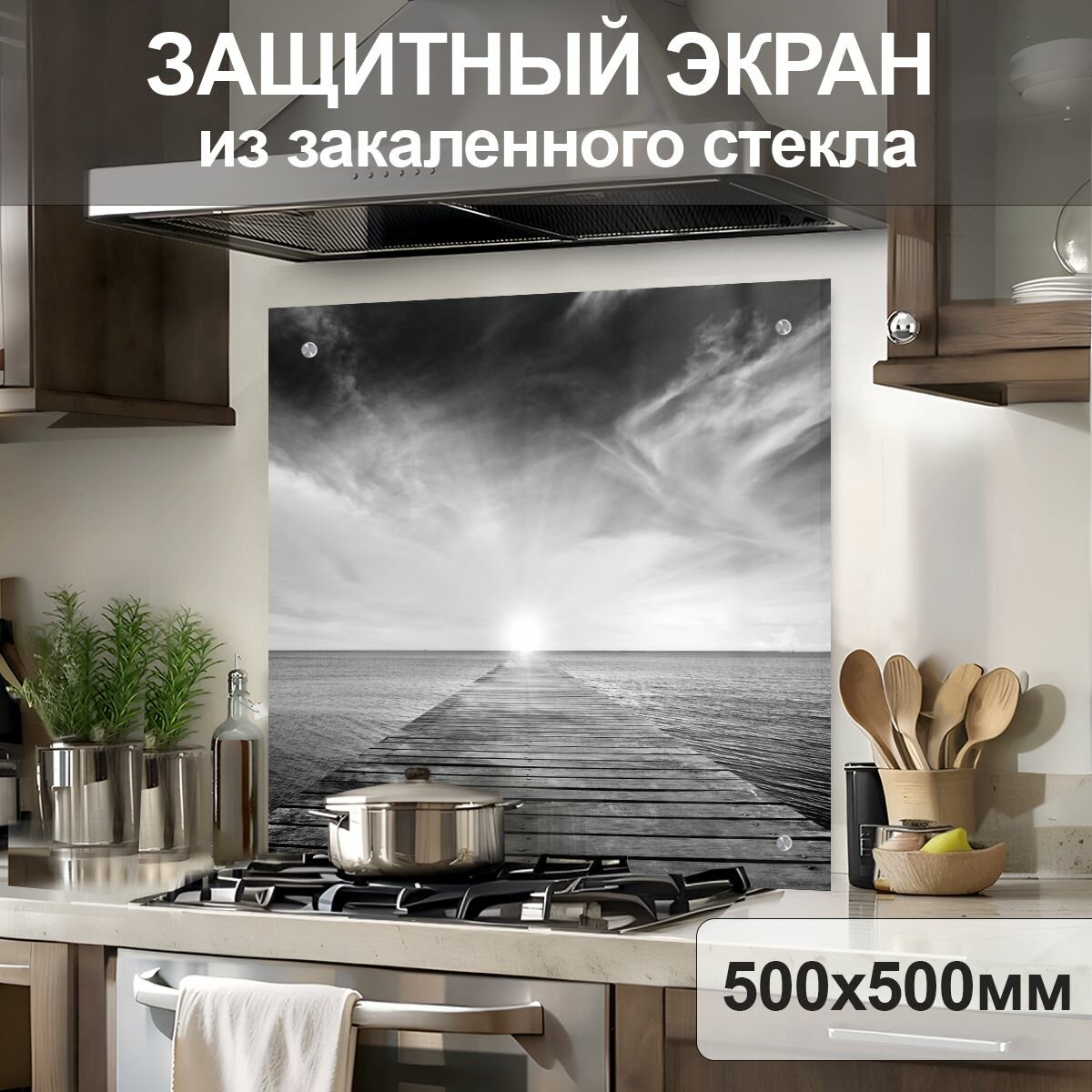 Купить Защитный экран от брызг на плиту 500х500х4мм. Стеновая панель для кухни из закаленного стекла. Фартук для кухни на стену с доставкой по всей России.