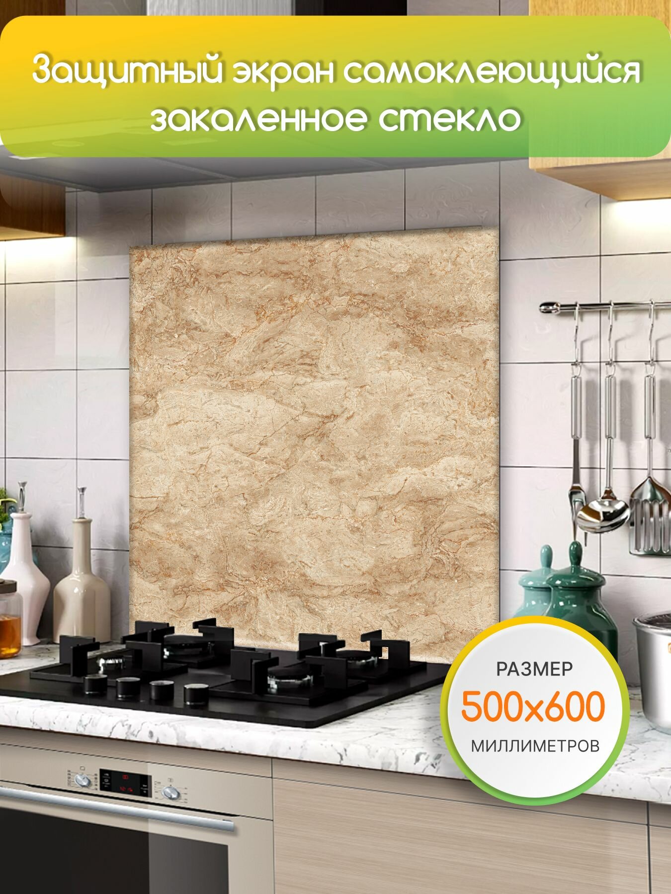 Купить Защитный экран от брызг на плиту 600х500х4мм. Стеновая панель для кухни из закаленного стекла. Фартук для кухни на стену с доставкой по всей России.