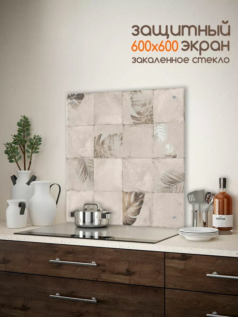 Купить Защитный экран от брызг на плиту 600х600х4мм. Стеновая панель для кухни из закаленного стекла. Фартук для кухни на стену с доставкой по всей России.