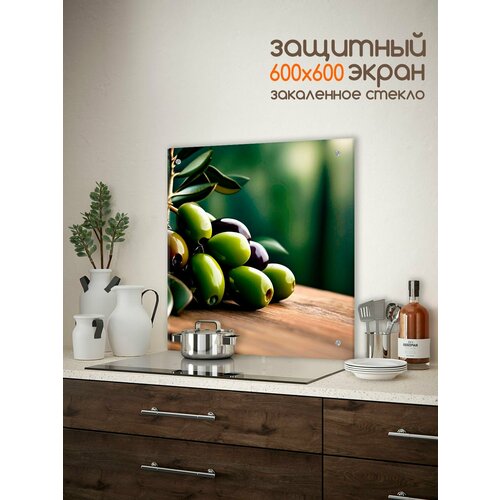 Купить Защитный экран от брызг на плиту 600х600х4мм. Стеновая панель для кухни из закаленного стекла. Фартук для кухни на стену с доставкой по всей России.