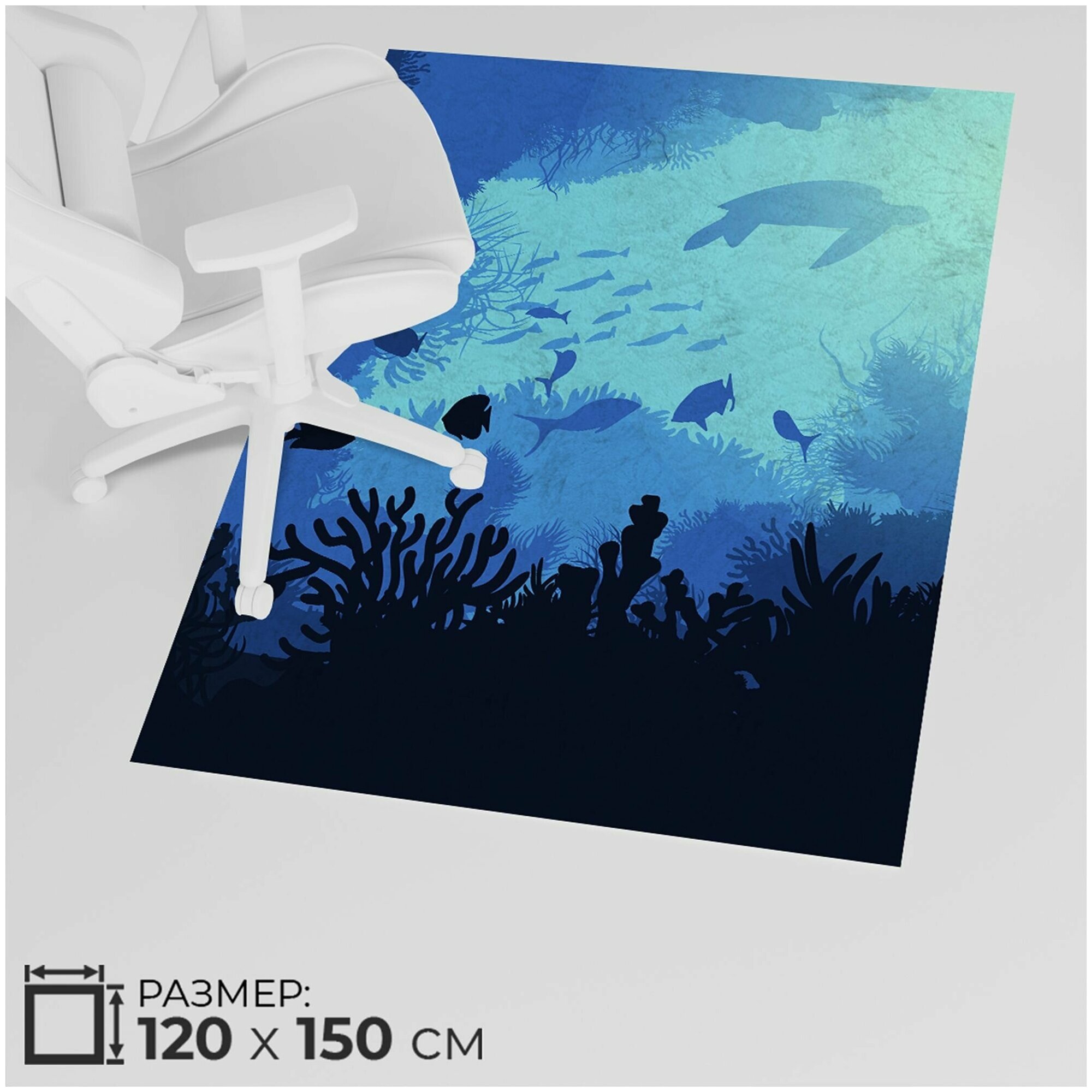 Защитный коврик под компьютерное кресло подарок рыбак. Защитный коврик на пол под компьютерное кресло поможет защитить деревянный пол, паркет или ламинат от повреждений колесиками офисного кресла. Защитный напольный коврик под компьютерное кресло предотвращает износ колес компьютерного или офисного кресла, продлевая тем самым срок эксплуатации. Размеры защитного коврика на пол под компьютерное/офисное кресло 120Х150 см идеально подойдут под размеры стандартных письменных или компьютерных столов. Яркий насыщенный рисунок добавит привлекательности интерьеру и станет заключительным элементом для создания уютной атмосферы. Чернила, используемые для печати, не имеют неприятных запахов, сохраняют сочность и насыщенность цвета, не выгорают от ультрафиолетовых лучей, устойчивый к истиранию ворс.