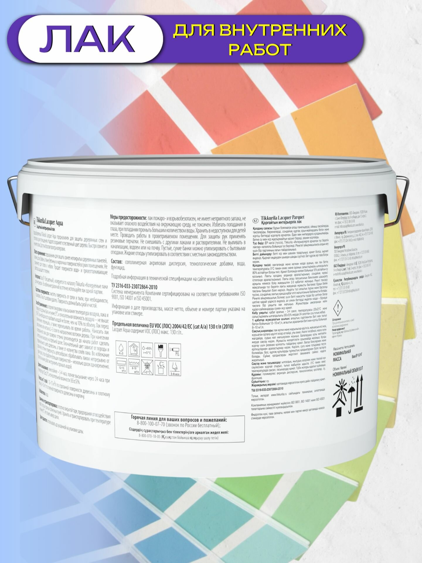 Тип: Водоразбавляемый колеруемый лак на акрилатной основе для внутренних работ.
