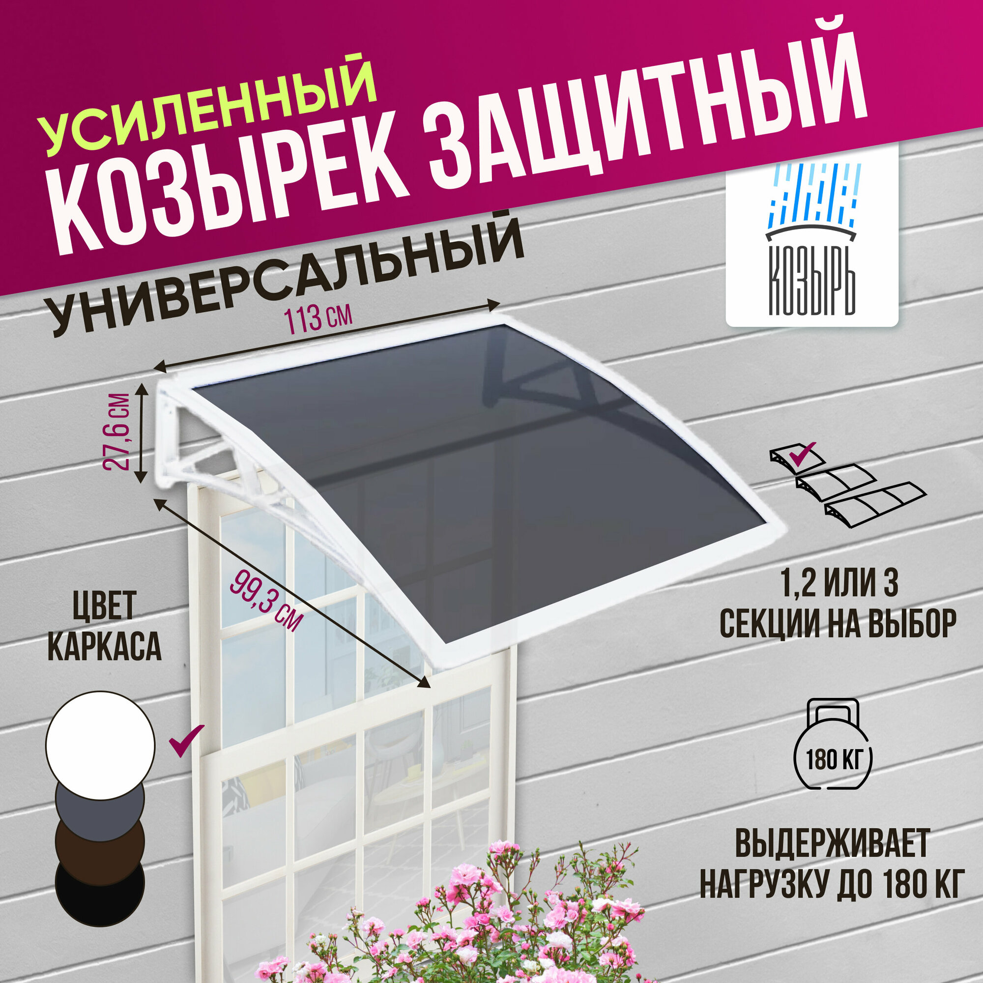 Усиленный защитный козырек тёмный одинарный, сотовый поликарбонат белый, Козырь: сравнение цен, характеристики, фото, актуальное наличие и цены.
