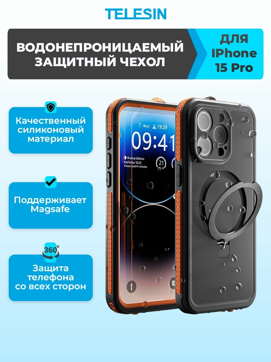 Купить Защитный водонепроницаемый чехол для iPhone 15 Pro Telesin с доставкой по всей России. Защитный водонепроницаемый чехол для iPhone 15 Pro Telesin: сравнение цен, характеристики, фото, актуальное наличие и цены.
