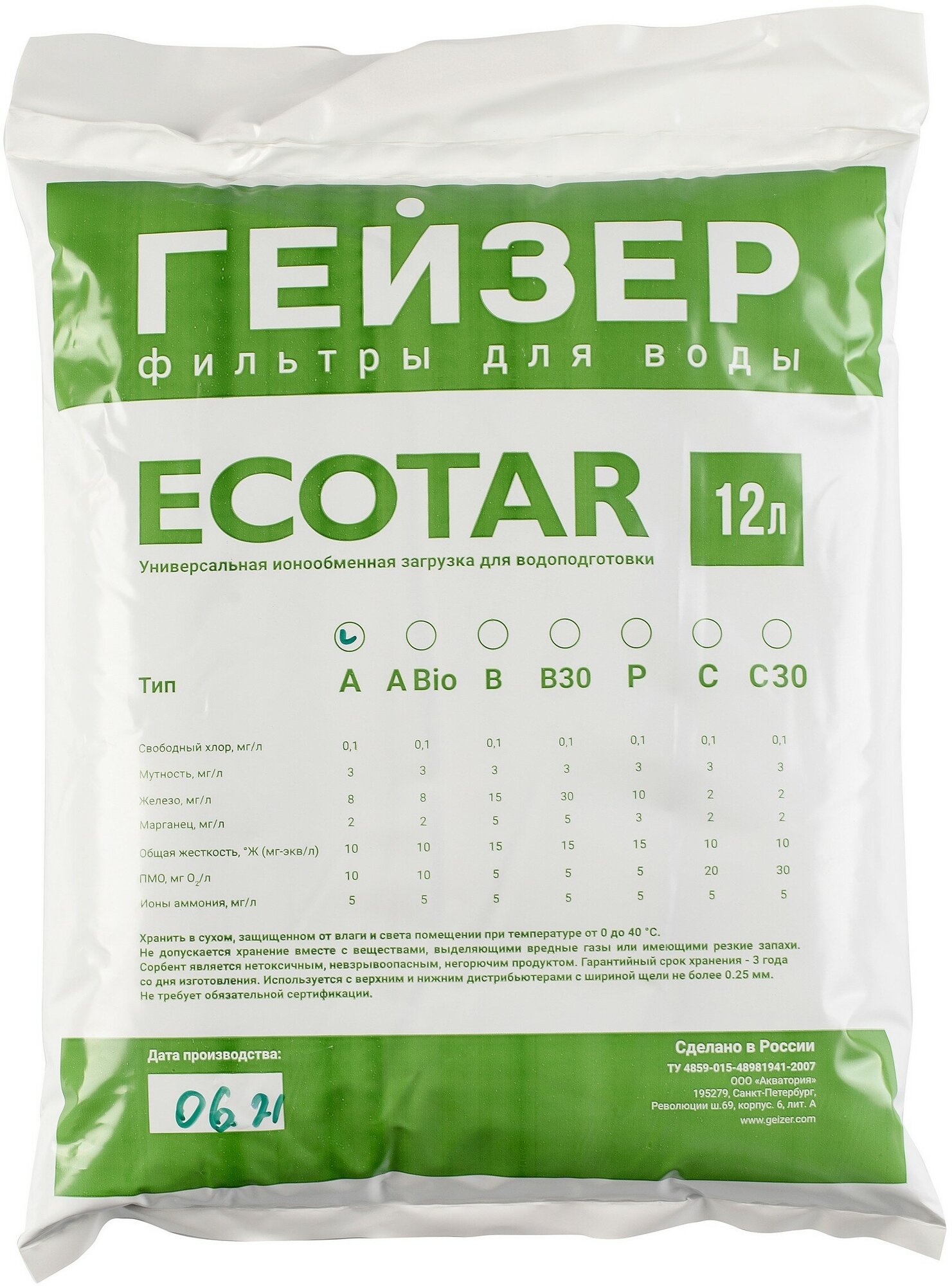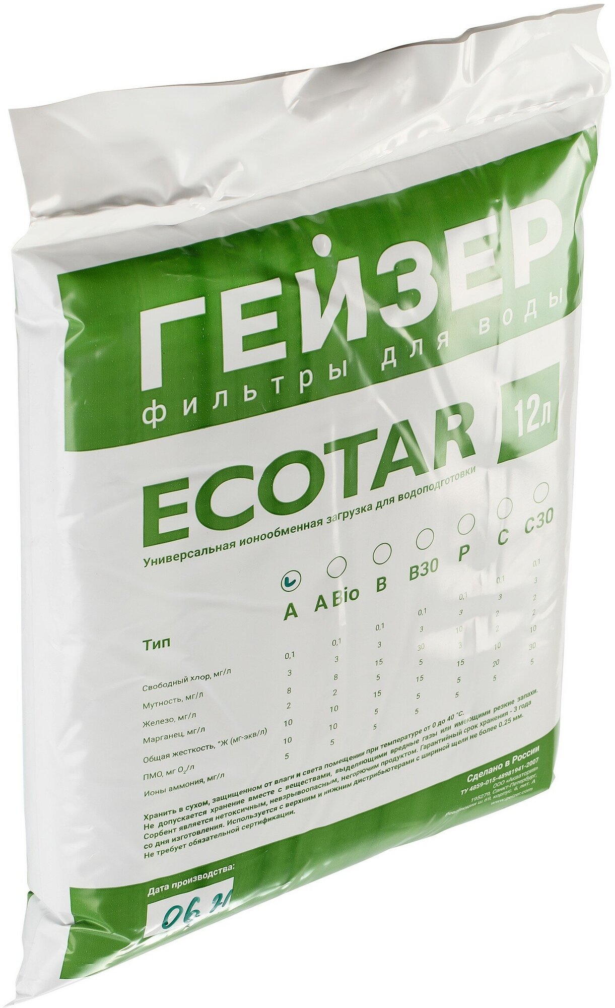 Засыпка Гейзер «Экотар А», для обезжелезивания, 12 литров, 10 кг: сравнение цен, характеристики, фото, актуальное наличие и цены.