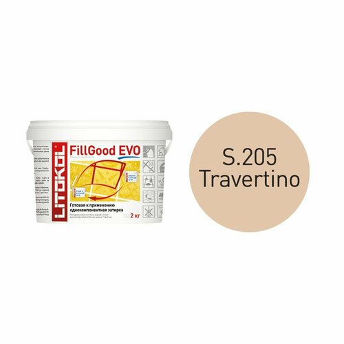 Полиуритановая затирка для межплиточных швов LITOKOL FillGood EVO. Благодаря инновационному составу FillGood EVO, привычный процесс работы по затирке швов становится значительно проще. FillGood EVO - готовый к применению однокомпонентный полиуретановый состав на водной основе для затирки швов керамической плитки, керамогранита и стеклянной мозаики шириной от 1 до 6 мм с водоотталкивающим эффектом. FillGood EVO может применяться для затирки межплиточных швов следующих видов плитки: керамическая плитка, керамогранит, натуральный и искусственный камень, мозаика стеклянная, каменная и керамическая, кислотоупорная плитка и клинкер. Не вызывает коррозии, не токсичен, безопасен для окружающей среды, не имеет никакого класса опасности. Не требует предварительного приготовления, что упрощает и ускоряет процесс проведения работ. Если материал не использован полностью, возможно его хранение при температуре от + 5 ° C до + 35 ° C и дальнейшее применение даже через несколько месяцев, при условии плотно закрытой оригинальной упаковки, это позволяет избежать потерю остатков затирки, состав сохраняет заявленные технологические свойства без потери подвижности и качества в течение неограниченного времени. FillGood EVO отличается высокой эластичностью по сравнению с цементными затирочными составами, что позволяет применять продукт на строительных элементах подверженных вибрационным и деформационным нагрузкам, таких как лестницы, перекрытия из листовых материалов. Благодаря своей особой мелкофракционной структуре легко наносится и максимально плотно заполняет межплиточное пространство. Продукт не содержит цемента, что позволяет избежать выцветания характерных для цементных продуктов. Специальные водоотталкивающие добавки, входящие в состав FillGood EVO, придают материалу гидрофобные свойства, что обеспечивает низкое поверхностное водопоглощение швов. Цветовая линейка позволяет добиться идеального сочетания тона затирки с тоном облицовочного материала, усиливая эффект непрерывности поверхности. Этот эффект особенно примечателенв случае применения облицовки с иммитацией дерева или натурального камня.