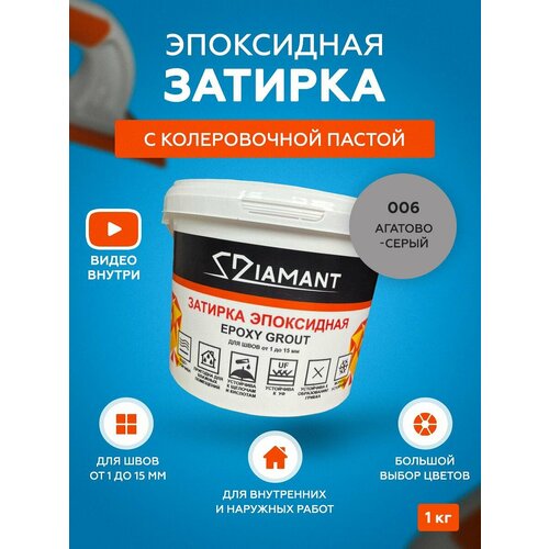 - Паста колеровочная для эпоксидной затирки Diamant Color 1 кг цвет 006 Агатово-серый, шприц на блистере, 4 мл