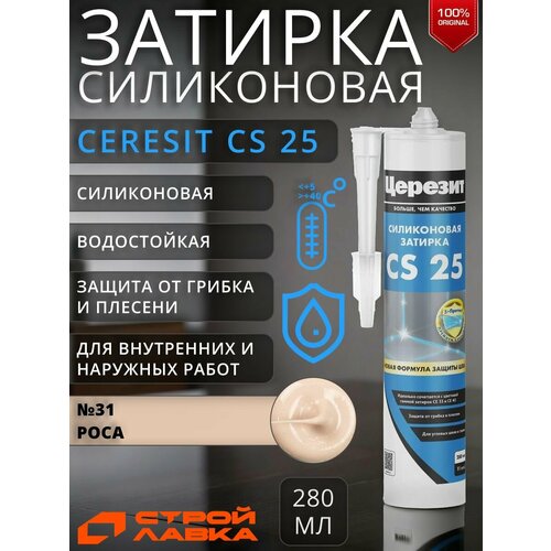 Силиконовый герметик Ceresit CS 25 №31 роса 280 мл - это незаменимый помощник при выполнении плиточных работ. Герметик обеспечивает надежную гидроизоляцию сложных примыканий плитки к сантехническому оборудованию, а также может применяться для герметизации деформационных швов.