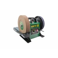 Заточной станок FABTEC FWG250 63267 с водяным охлаждением применяется для заточки, шлифовки и полировки различных инструментов. В комплект поставки входят дополнительные инструменты и приспособления. Скорость вращения от 90 до 150 об/мин. Специальный поликарбонатный лоток защищает корпус станка от воды. Встроенный в станок небольшой ящик подходит для хранения инструментов и приспособлений. Шлифовальные круги надежно крепятся на валу из нержавеющей стали. Это позволяет избежать появления ржавчины. Точение и шлифовка происходят во влажной среде. Мощность двигателя: 160 Вт. Тип: для инструмента. Тип привода: электрический. Тип электродвигателя: асинхронный. Передача: прямая. Напряжение: 220 В. Частота вращения шлиф. круга: 1500 об/мин. Регулировка оборотов: есть. Толщина круга: 50 мм. Размер второго заточного круга: 230 мм. Толщина второго круга: 30 мм. Выключатель аварийной остановки: нет. Класс товара: Профессиональный. Габариты без упаковки: 285х470х320 мм. Вес нетто: 16 кг. Частота вращения второго шлиф. круга: 1500 об/мин. Размер заточного круга: 250 мм. Подсветка: нет. Наличие защитного экрана: нет. Со стойкой: нет. С пылесосом: нет. С гравером: нет. Комплектация: Заточный станок FABTEC FWG250, Алмазный инструмент для правки шлифовальных кругов, Опора для ручной заточки, Брусок для очистки и выравнивания заточного камня, Паста для полировки поверхности, Угловой калибр для точной установки угла заточки инструмента на шлифовальном круге, Угломер для определения заданного угла.