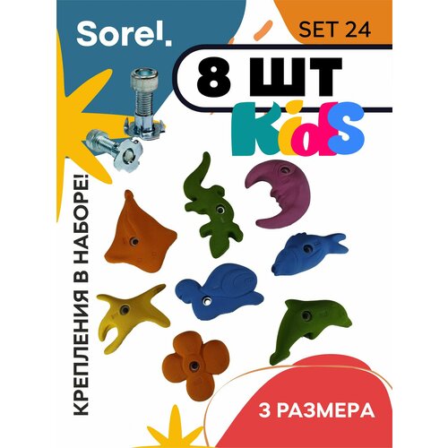 Мы производим высококачественные профессиональные зацепы и скалодромы с 2002 года. Нами разработаны зацепы, которые прекрасно подходят для создания как домашнего, так и уличного скалодрома и не боятся влаги и воздействия окружающей среды. Подбор состава, для изготовления зацепов, проходил при постоянном контроле и рекомендациях профессиональных скалолазов в течении трех лет. В результате кропотливого труда инженеров и спортсменов была получена оптимальная поверхность для зацепов, в которой сочетается идеальное сцепление для предотвращения срывов и одновременно низкое травмирование кожи рук. Это позволяет тренироваться практически каждый день. Именно поэтому уже более 20 лет профессиональные скалолазы выбирают зацепы марки Sorel как в России так и за рубежом. Скалодромы и зацепы нашего производства, используются в качестве спортивных тренажеров и аттракционов, ими оборудованы многие школы, вузы, фитнесс-центры. Специальные подразделения МЧС, ФСБ, Министерства обороны и других силовых ведомств комплектуют скалодромами SOREL свои учебно-тренировочные центры. И конечно мы не могли обойти вниманием наших юных скалолазов, как начинающих, так и более опытных. Наши наборы зацепов прекрасно подходят как для самых маленьких (от 2 лет) так и взрослых пользователей. Примерный расчет на м3 для создания детского и взрослого скалодрома: 2-4 года – 9 зацепов, 4-7 лет – 7 зацепов, 7-13 лет – 5 зацепов, 14-21 лет и старшие – 3 зацепа. Один зацеп выдерживает нагрузку весом до 200кг. Отличается особой долговечностью и длительным сроком эксплуатации, более устойчив к засаливанию и легко моется мыльной водой. Наборы (Set) зацепов производителя Sorel прекрасно сочетаются между собой. Разная форма подходит для разных уровней сложности и позволяет простроить разнообразные трассы. Просто повернув зацеп на 90-180 ° можно усложнить или упростить трассу. Если же просто перекручивать зацепы, меняя их местами набор трасс становится практически не исчерпаем. В комплектацию уже входит крепёжный набор: Винт М10*45 и гайка, для крепления на фанеру от 15 до 18мм включительно. Для крепления на бетонную стену необходимо отдельно приобретать забивные анкера М10. Комплектация: 8 зацепов (XL - 1 шт, XXL - 5 шт, R - 2 шт.), инструкция, крепёжный набор.