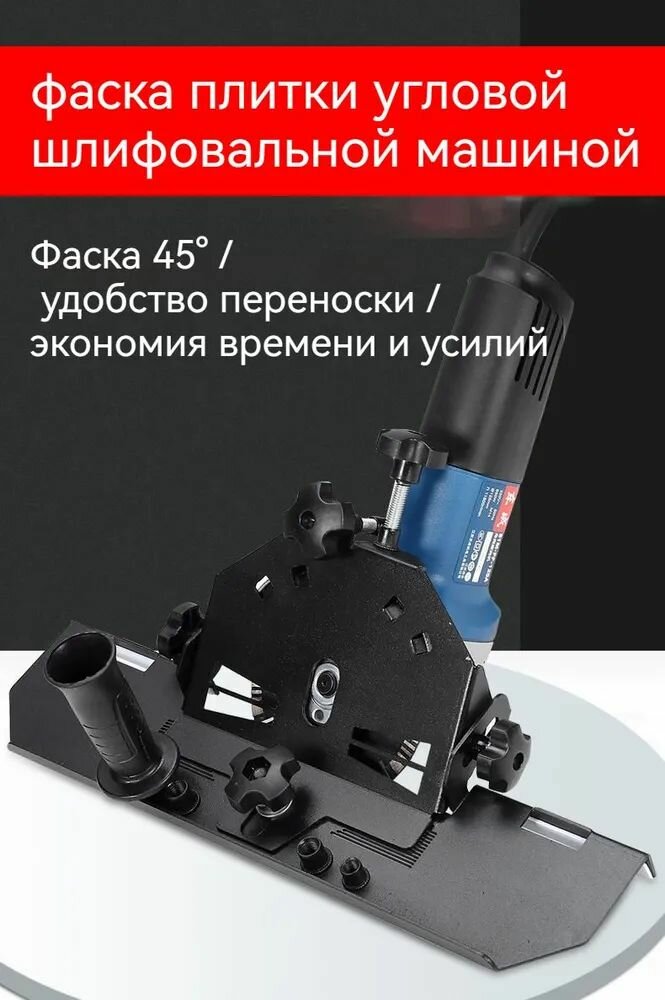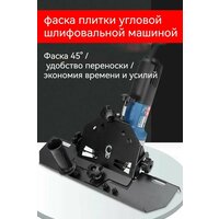 Заусовщик насадка на болгарку для запила плитки под 45 градусов. Для красивой облицовки внешних прямых углов, торец керамической плитки срезают под 45 градусов болгаркой, чтобы сформировать аккуратный угол 90 градусов. Запил заусовку плитки, как правило выполняют болгаркой с использование специальных насадок для ушм: насадка для ушм под 45, заусовщик плитки, угловая насадка на болгарку, шлифовальная насадка, слайдер ушм 45 или устройство для запила плитки. Инструмент для запила плитки 45 может иметь разное крепление, могут крепиться в местах установки ручки, за защиный кожух или вобхват за корпус ушм. В качестве режущего инструмента используют алмазный диск по керамике и керамограниту. Для более удобной работы используют специальные алмазные круги с увеличенной рабочей частью. Данные станки для запила плитки позволяют обрабатывать кромку плитки на месте, нет необходимости везти плиты на гидрорез. Запил плитки под 45 градусов - не простой процесс, к которому нужно отнестись с соблюдением всех мер безопасности. Кондуктор для запила подойдет к 115 и 125 мм болгаркам. Заусовщик 45 градусов может оставлять локальные неровности, для получения идеальной кромки рекомендуется дополнительно использовать алмазные гибкие шлифовальные круги АГШК ( черепашка) зерно 30, 50, 100 ( зависит от твердости материала), как правило используют круги диаметром 100 мм, крепятся на опорные чашки с липучкой. Время, когда для закрытия внешнего угла использовали декоративные уголки уже ушло, сейчас используют открытые внешние углы с запилом кромки плитки и устройством межплиточного шва. Для фиксации положения плитки используют многоразовые и одноразовые свп, которые сохраняют плоскость, предотвращают усадку и сдвиги.