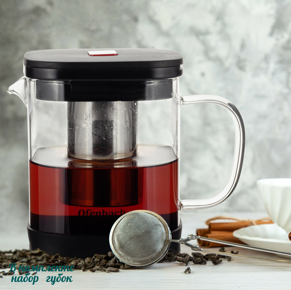 Заварник со съемным ситечком 1000мл (стекло, нержавеющая сталь) 060246: сравнение цен, характеристики, фото, актуальное наличие и цены.