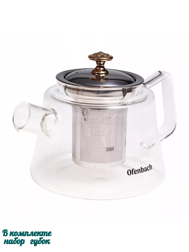 Стеклянный заварочный чайник 1100 мл. Ofenbach NB 100617L с ситечком (прозрачный)