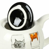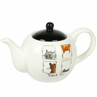 Заварочный чайник 0.95 л Daniks Cats, доломитовый корпус и крышка, толстостенный круглый белый дизайн с рисунком котов, современная посуда для чая, большой носик, Китай