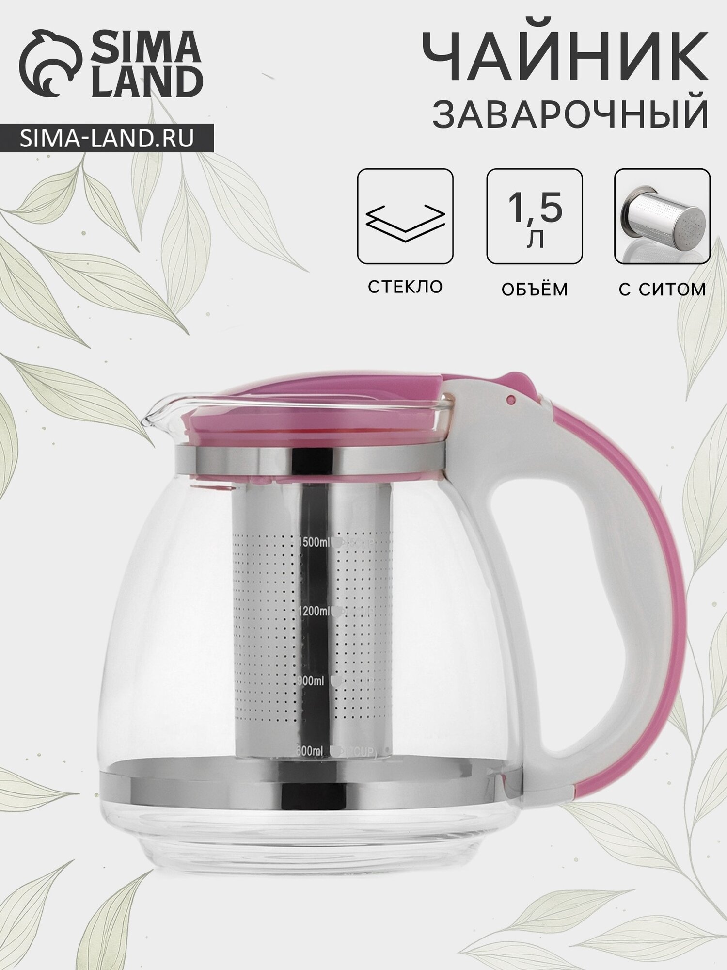 Купить Заварочный чайник, 1.5 л, с металлическим ситом, стекло, микс с доставкой по всей России.