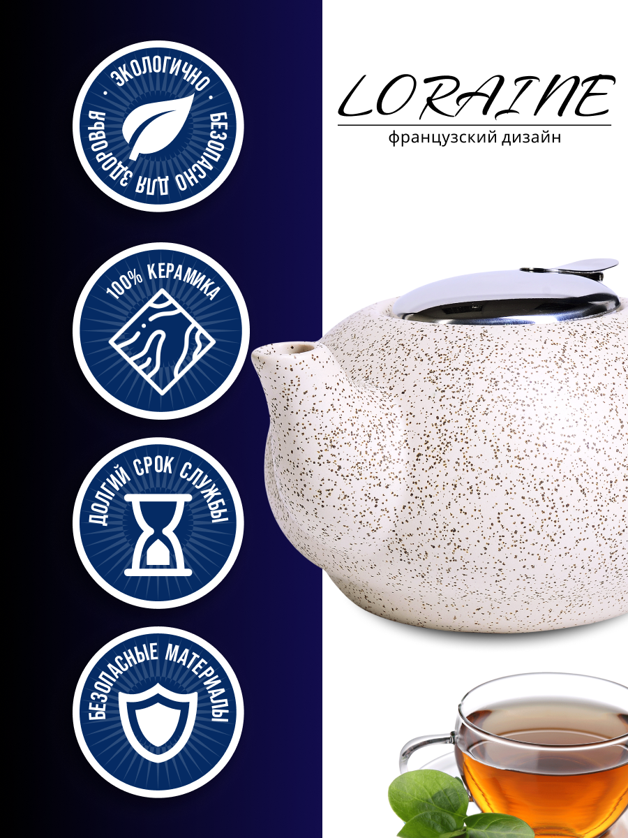 Купить Заварочный чайник 750мл керамика LORAINE с доставкой по всей России. Заварочный чайник 750мл керамика LORAINE: сравнение цен, характеристики, фото, актуальное наличие и цены.