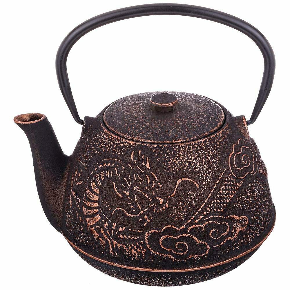 Заварочный чайник изготовлен из чугуна высокого качества. За счет равномерного распределения тепла внутри чайника, напиток получается максимально вкусным и насыщенным. Чугунный чайник дольше других удерживает тепло. Этот чайник украсит любую чайную церемонию, благодаря своему стильному дизайну. Станет прекрасным подарком. Мыть с применением нейтральных моющих средств, рекомендуется вытирать насухо после мытья во избежание появления ржавчины. Не хранить чай в чайнике долгое время, не использовать в ПММ. Не подходит для использования на любых типах плит.