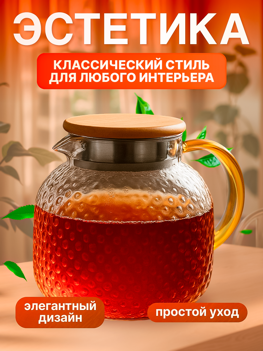 Особенностью этого чайника является его дизайн. Он выполнен в стиле френч-прессов и заварников, что придает ему особый шарм и эстетику.