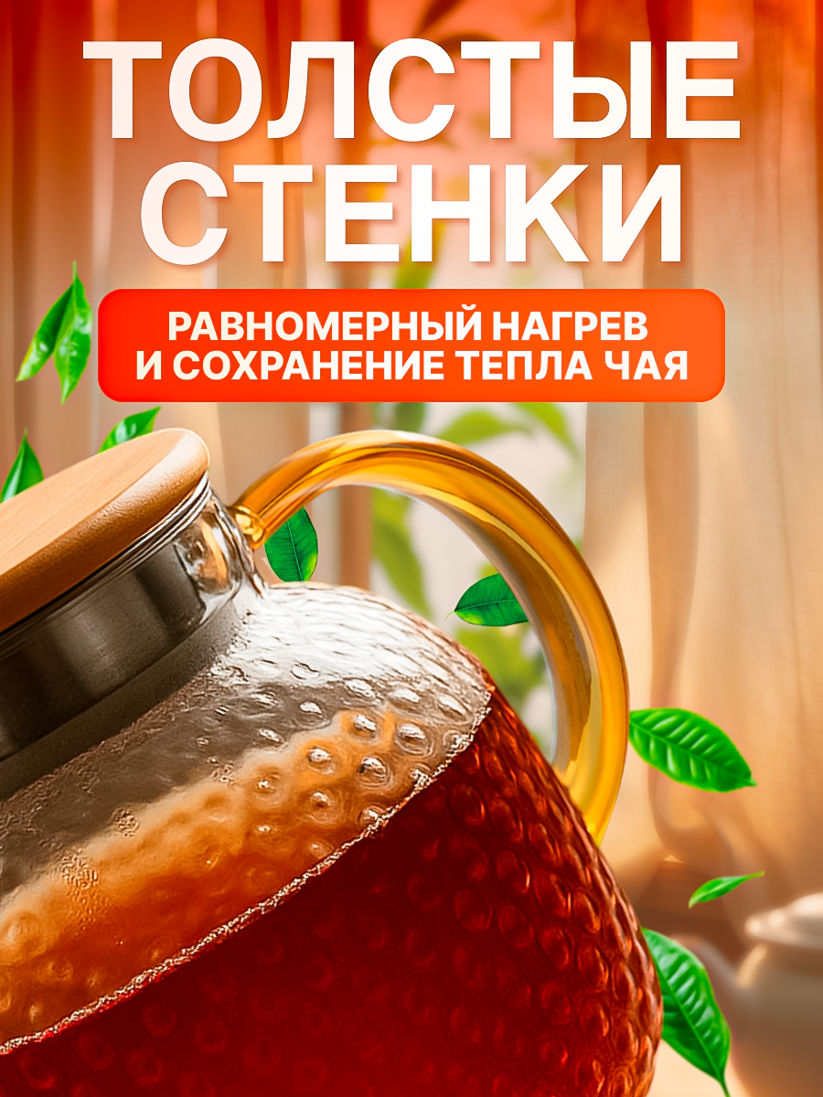 Объем чайника составляет 1300 мл, что позволяет приготовить достаточное количество напитка для большой компании или семьи.