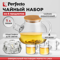Чайник заварочный стеклянный с кружками PERFECTO LINEA Bamboo заварочный набор 38-100001: сравнение цен, характеристики, фото, актуальное наличие и цены.