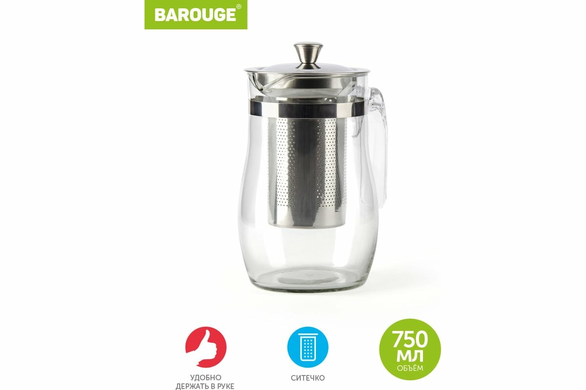 Заварочный стеклянный чайник с металлическим ситом BAROUGE BF-513/30 750 мл BF-513 750 мл/чайник: сравнение цен, характеристики, фото, актуальное наличие и цены.