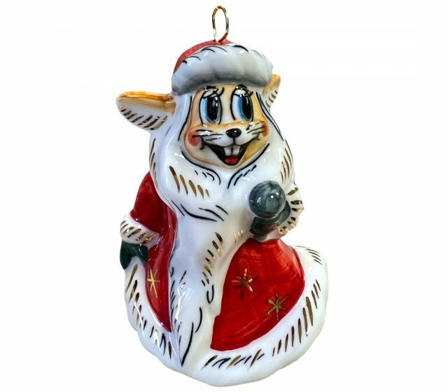 Купить Елочная игрушка Заяц в шубке. Ну, погоди, фарфор, ручная роспись, Лефортовский фарфор с доставкой по всей России.