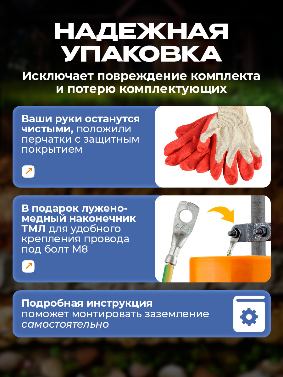 - Глубина заземления 3 метра (доступны варианты 4,5 а также 6 и 9 метров)
