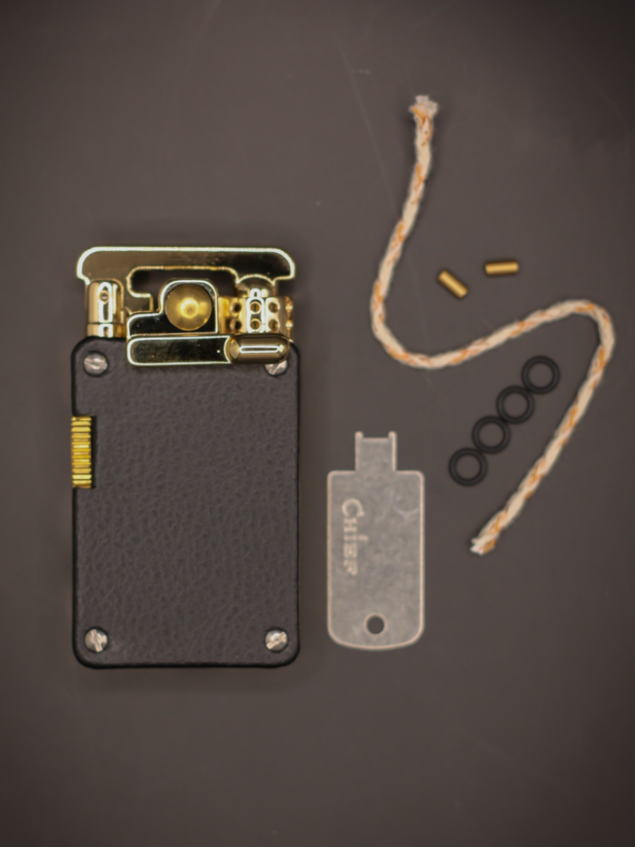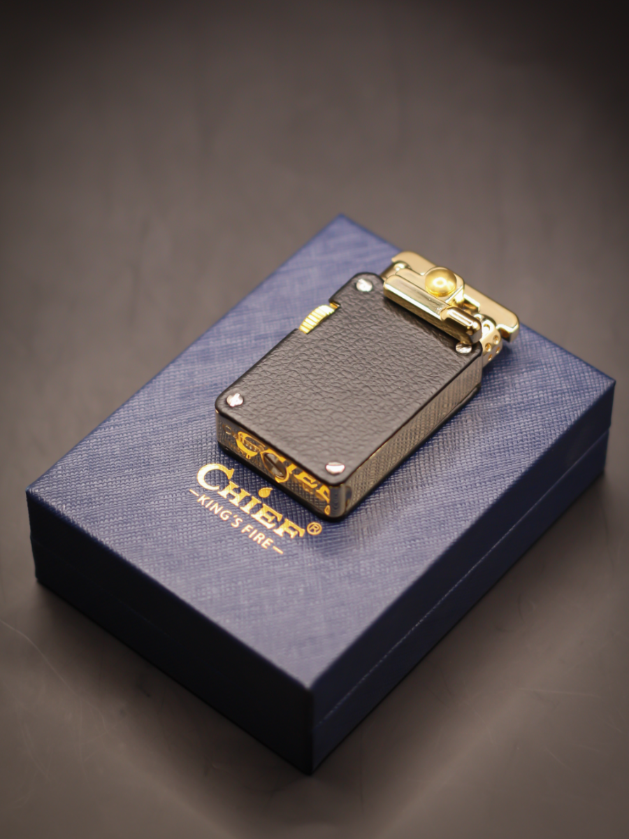 Коллекционная винтажная зажигалка премиального бренда "Chief" с накладкой из кожи. Зажигалка не заправлена и поставляется без топлива. Коллекционеры и ценители непременно отметят элегантность конструкторской мысли, простоту, эстетику и функциональность модели. Как и любая хорошая вещь, зажигалка требует внимательности и правильного обращения. Чтобы получить искру, рычаг нужно отвести почти под 90 градусов (чтобы храповик зацепил кресало) и дать пальцу соскользнуть (см. видео). Если зажигалка перестала давать искру, то просто вставьте новый кремень. Колесо на левой стороне корпуса содержит и позволяет хранить дополнительные кремни. Модель полностью герметична, как со стороны фитиля, так и со стороны отверстия для заправки, что предотвращает испарение топлива. Стильный подарок по любому случаю и мужчине, и женщине. Огонь добывается одним изящным движением. Заправка: заправляйте зажигалку (4-6мл) не дожидаясь полного конца заправки (при уменьшении пламени, и с учётом оставшегося топлива), чтобы горело топливо, а не фитиль. Тогда не придётся часто его подтягивать или заменять. Если перелить, то может намокнуть кремень. В таком случае нужно просто немного подождать и искра снова появится. Обслуживание: Высоту пламени можно регулировать, изменяя высоту фитиля. Нужно вытащить фитиль на несколько миллиметров, чтобы увеличить поверхность горения и высоту пламени или подрезать фитиль, чтобы уменьшить пламя. Уход за фитилём стандартный (вытащить и подрезать прогоревшую часть, если требуется). Зажигалка пустая, не заправлена.