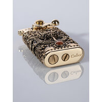 Бензиновая зажигалка "Жемчужина дракона" премиального бренда "Сhief". Дракон символизирует доброе начало - силу, жизненность, а жемчужина - мудрость и власть над сутью. Зажигалка полностью герметична, как со стороны фитиля, так и со стороны отверстия для заправки, что предотвращает испарение топлива. Простота, эстетика и функциональность. Важно: рычаг нужно оттянуть до упора (характерного щелчка) и резко отпустить, давая пальцу соскользнуть (смотрите на видео), чтобы кресало и кремень дали искру. Огонь добывается одним изящным движением. Ценители непременно отметят элегантность конструкторской мысли. Зажигалка подходит и для прикуривания сигар, самокруток, и для раскуривания трубок. Заправка: заправляйте зажигалку (4-6мл) не дожидаясь полного конца заправки (при уменьшении пламени, и с учётом оставшегося топлива), чтобы горел бензин, а не фитиль. Тогда не придётся часто его подтягивать или заменять. Если перелить, то может намокнуть кремень. В таком случае нужно просто немного подождать и искра снова появится. Стильный подарок по любому случаю и мужчине, и женщине. Зажигалка пустая, не заправлена и поставляется без бензина. Обслуживание: Высоту пламени можно регулировать, изменяя высоту фитиля. Нужно вытащить фитиль на несколько миллиметров, чтобы увеличить поверхность горения и высоту пламени или подрезать фитиль, чтобы уменьшить пламя. Уход за фитилём стандартный (вытащить и подрезать прогоревшую часть, если требуется). Чтобы сменить фитиль (после нескольких подтягиваний) и вату, нужно открутить винт в центре основания, который держит кремень, и резьбовую втулку под ним (инструмент в комплекте).