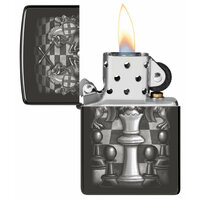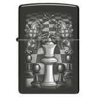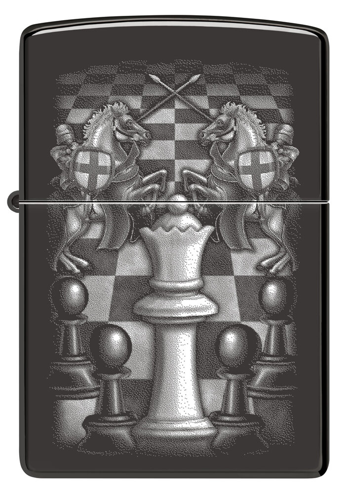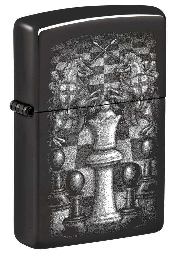 Купить Оригинальная бензиновая зажигалка ZIPPO Chess Design с покрытием High Polish Black, латунь/сталь, черная, 38x13x57 мм с доставкой по всей России.
