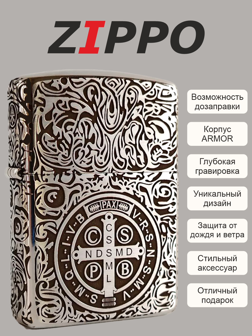 • Топливо Zippo премиум-класса продается отдельно (зажигалка приходит к Вам не заправленная топливом).