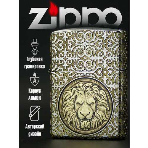 Зажигалка бензиновая Zippo Armor с гравировкой Львиный оскал