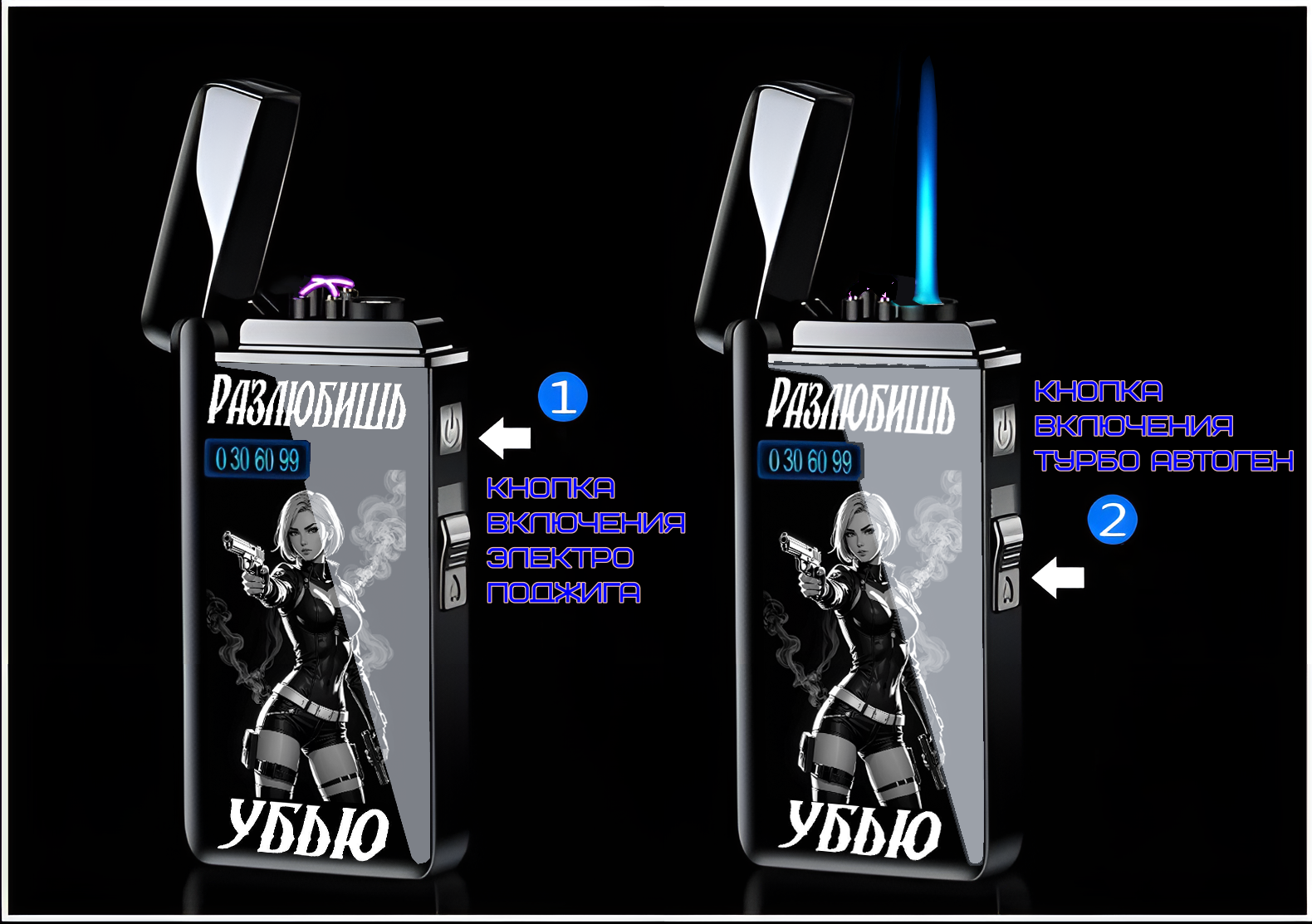 Зажигалка «Двойной поджиг», турбо факел, электро поджиг, гравировка ( без газа )
