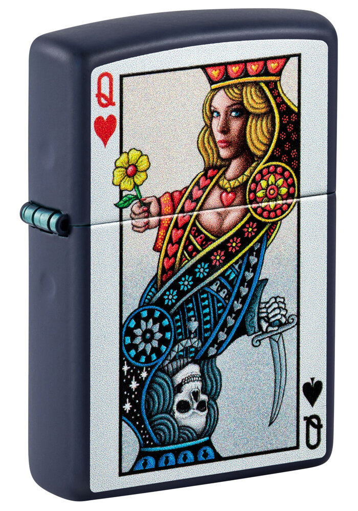 Купить Оригинальная бензиновая зажигалка ZIPPO Queen Design с покрытием Navy Matte, латунь/сталь, синяя, матовая, 38x13x57 мм с доставкой по всей России.