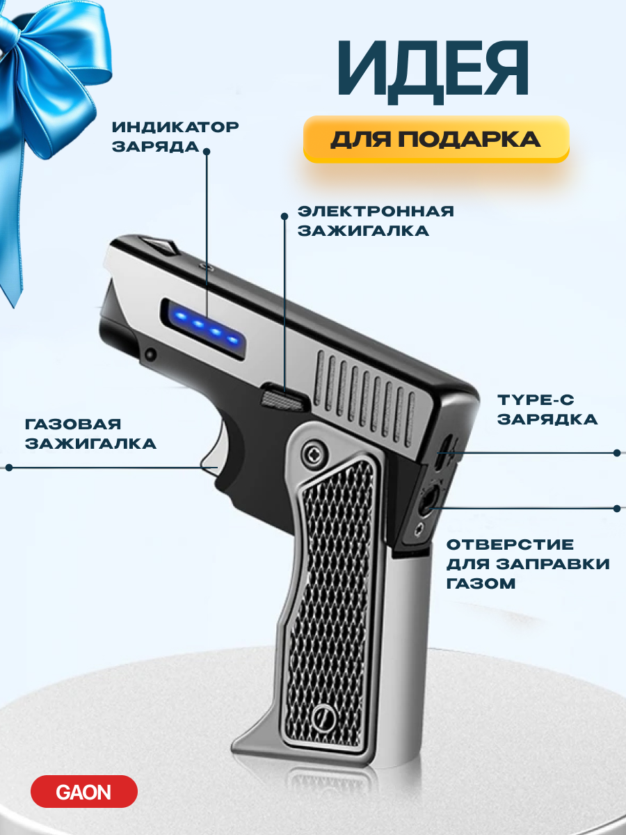 Зажигалка GAON, пистолет, 2в1, электронная + газовая, складная, с Type-C, серебристая, Без газа: сравнение цен, характеристики, фото, актуальное наличие и цены.