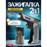 Купить Зажигалка GAON, пистолет, 2в1, электронная + газовая, складная, с Type-C, серебристая, Без газа с доставкой по всей России.