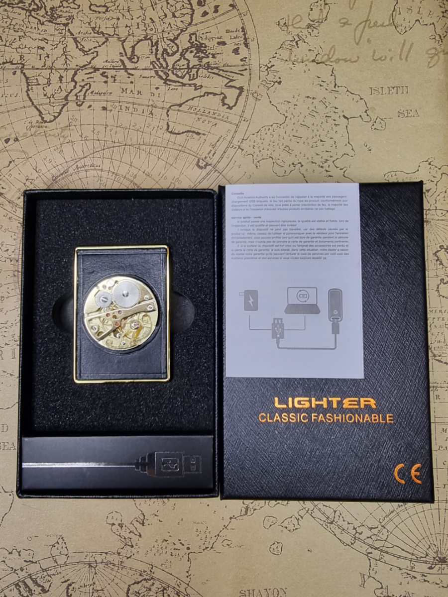 Электронная зажигалка USB с накладкой из натуральной кожи премиального бренда Uyan. Очень приятная тактильно. Модель имеет винтажный дизайн и современную начинку. Символизм времени является глубоким и личным переживанием, потому что это всё, что у нас есть. И неважно, движемся ли мы вместе с жизнью, находясь на волне или избегаем её - время неумолимо, любая история закончится. Но какой именно будет наша история по содержанию - решать только нам. С этой зажигалкой не нужно зависеть от топлива, ведь подзарядить её можно, где угодно – через адаптер от сети, от компьютера, в машине. Кабель в комплекте. Стильный подарок по любому случаю и мужчине, и женщине. Эстетичная и надёжная модель, которая станет достойной частью коллекции любого ценителя эффективного и прекрасного. Зарядка в районе часа; время работы при средней частоте использования - 2-3 дня. В подарочной коробке. Для зажигания развести части зажигалки до появления индикации (на крышке) и дождаться накаливания спирали!