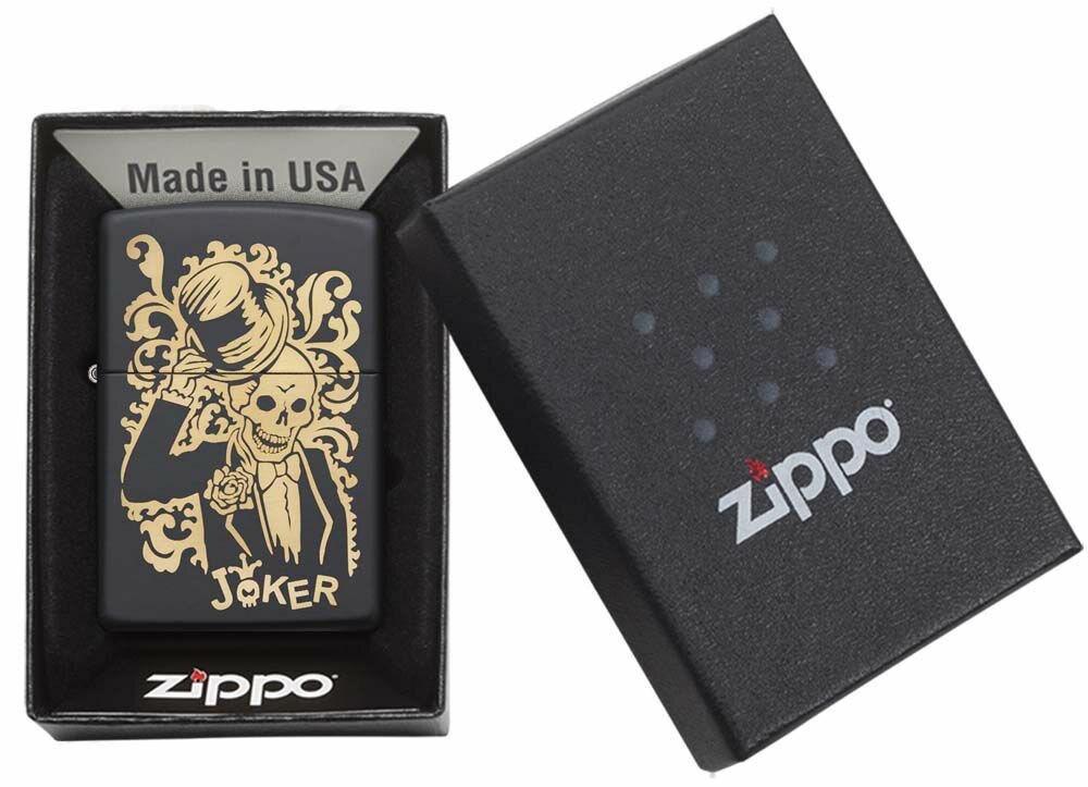 Приглядитесь – за Джокером скрывается замысловатая филигрань! Лазерная гравировка обнажает сквозь черное матовое покрытие глубокий бронзовый узор – одним словом, шикарно… Как и Джокер, снимаем шляпу, приветствуя каждого поклонника Zippo! Поставляется в подарочной коробке. Для оптимальной работы рекомендуется использовать только оригинальное топливо Zippo.