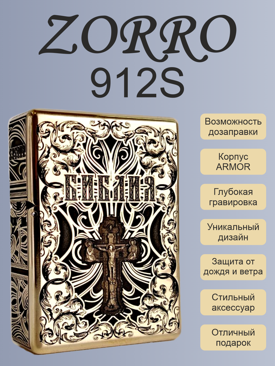 Зажигалка zorro бензиновая 912S латунь с гравировкой Библия 3D (русская версия): сравнение цен, характеристики, фото, актуальное наличие и цены.